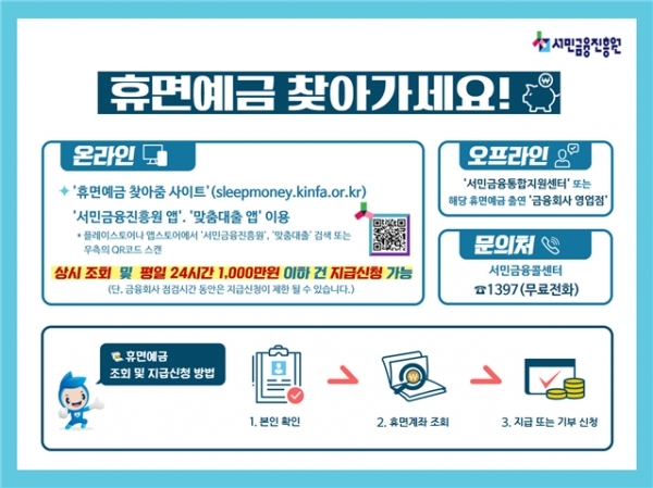 - 서민금융진흥원 ‘휴면예금 찾아줌’에서 신청